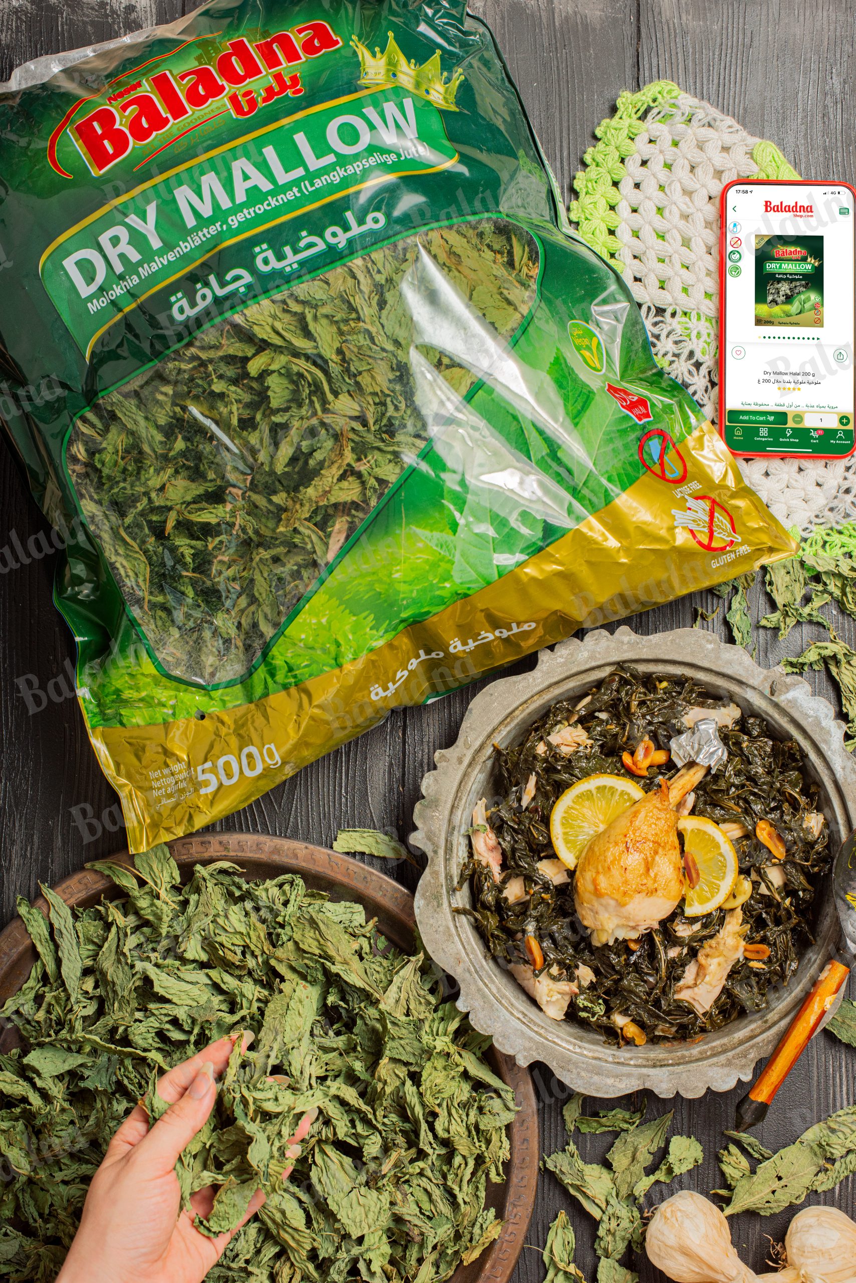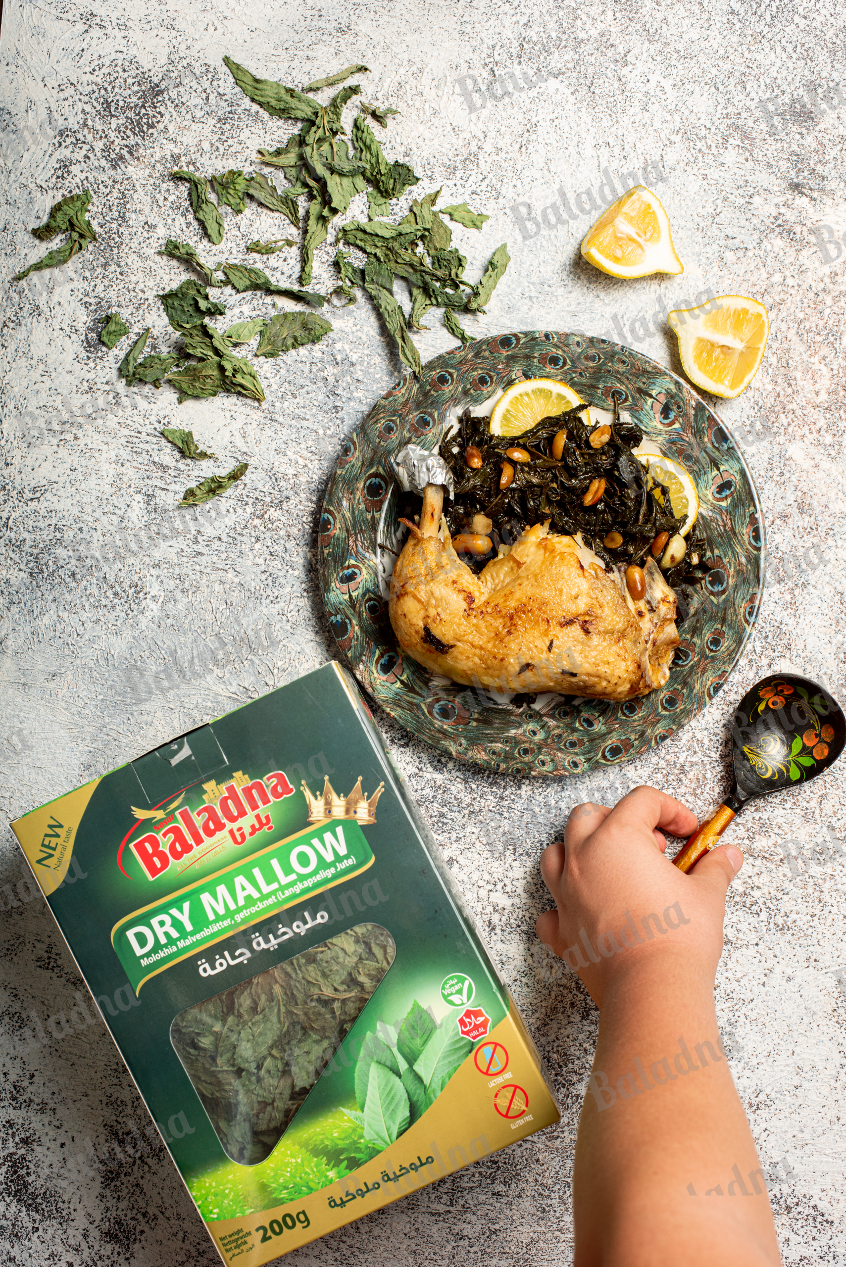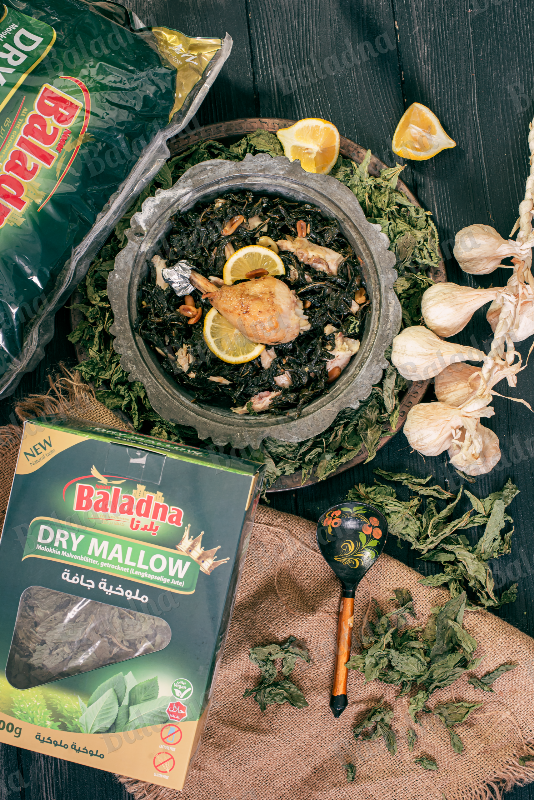 * Baladna Molokhia ist eine der besten Sorten von Molokhia. * Es ist ein beliebtes Gericht in der Orientalischen Mittelmeerregion. * Die Pflanze gilt als charakteristisches Gemüse für diese Küche. * Einer ihrer Namen ist „Die Königliche“, da der König 1805 ein Dekret erließ, das dem einfachen Volk den Verzehr von Molokhia verbot. * Der Verzehr des Gemüses wurde auf den damaligen Königspalast beschränkt. * So kam das Gemüse zu seinem königlichen Namen. * Malvenblätter werden vorsichtig mit Wasser gewaschen * Bei schwacher Hitze unter leichtem Rühren 5 Minuten erhitzen * Fett zusetzen und 15 Minuten rösten * Knoblauch und Koriander mit Fett in einer separaten Pfanne rösten und zu der gerösteten Molokhia geben * Gekochtes Huhn und Wasser hinzufügen, bis das Wasser mit Molokhiablättern bedeckt ist und nach Belieben Salz hinzufügen * Bei schwacher Hitze eine Stunde lang alle 10 Minuten umrühren * In den letzten 5 Minuten den Saft einer halben Zitrone hinzufügen und gut umrühren * Das Gericht ist servierfertig.
