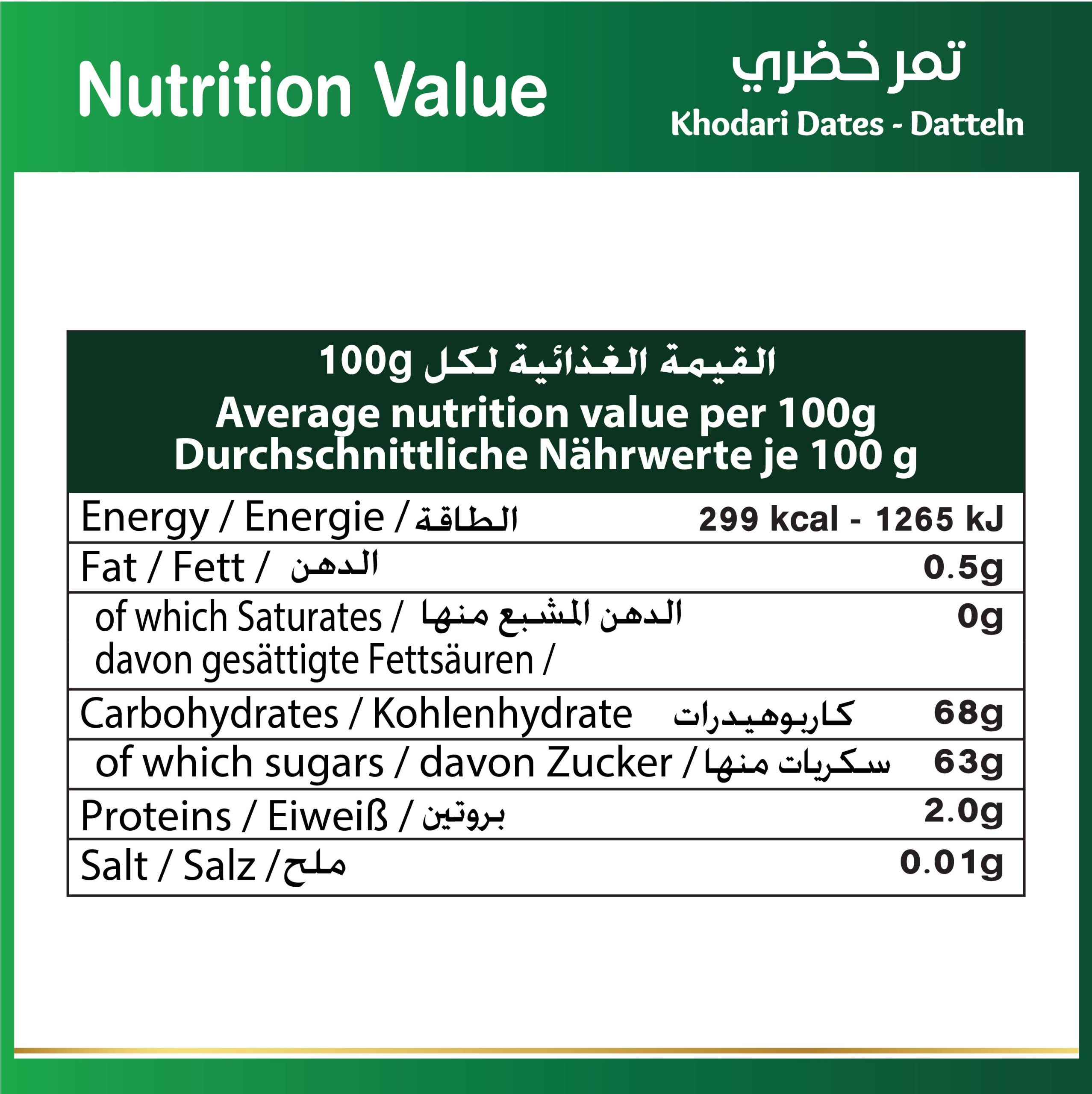 The premium dates of our country, which we selected for you from the fresh crop from the land of the Hijaz, from the country of the Two Holy Mosques, the Kingdom of Saudi Arabia, and from its blessed dates recommended by the Messenger of God, Muhammad, may God bless him and grant him peace And it was mentioned in the Holy Qur’an, and dates are considered an integral food that the Arabs used to live on as a main food that provides them with the necessary energy, and dates contain Many important nutrients for a healthy body, most notably Calcium, sulfur, amino acids, iron, potassium, copper, manganese, magnesium, phosphorus, dietary fiber, vitamins such as: B5, A1, B1, B2, B3, monosaccharides (glucose), disaccharides (sucrose), fluorine and others