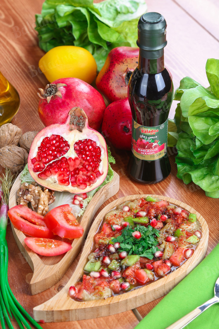 It is one of the tastiest and most important sauces that are used in the Arab region and the Middle East, and it is mainly prepared from sour pomegranate juice which is boiled for a long time and converted into thick sauce, which gives the wonderful and rich taste. Ready to eat and use, it comes in luxury packages with a juicer to be added to some types of salads, kubbah, and many other dishes. It is distinguished by its sour taste and great texture, which you will only find in Baladna . . This product is Vegan, vegeterian, lactose free and gluten free . . .