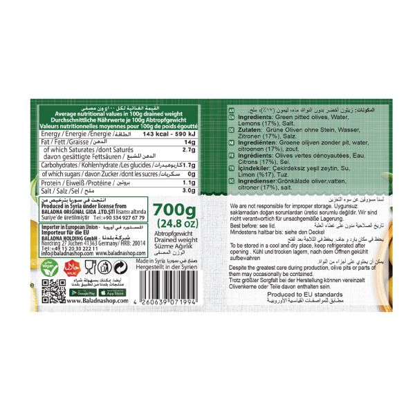 Baladna Green olives stuffed with lemon – Oriental 1000 g
