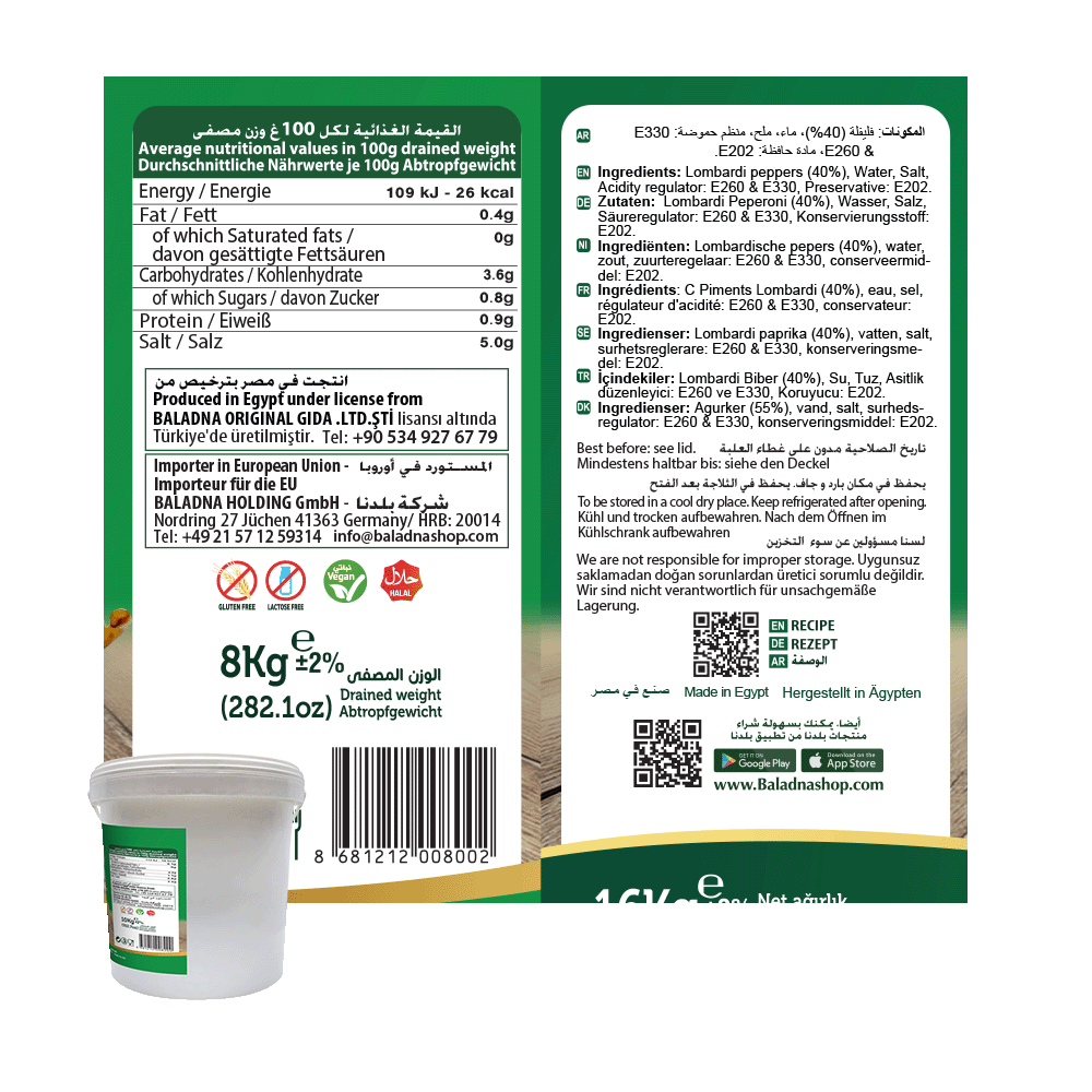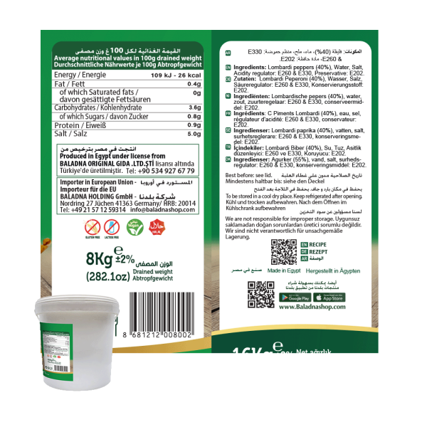 Baladna Pickled Lombardi Peppers – Oriental 15000 g