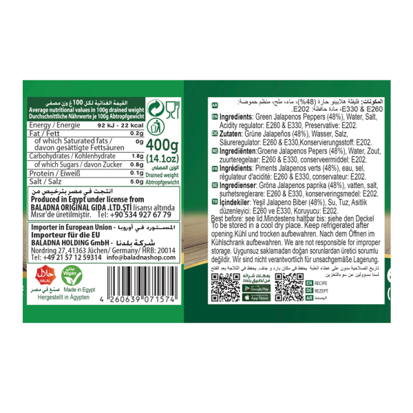 Baladna Sliced Green & Red Jalapenos, Hot – Oriental 660 g